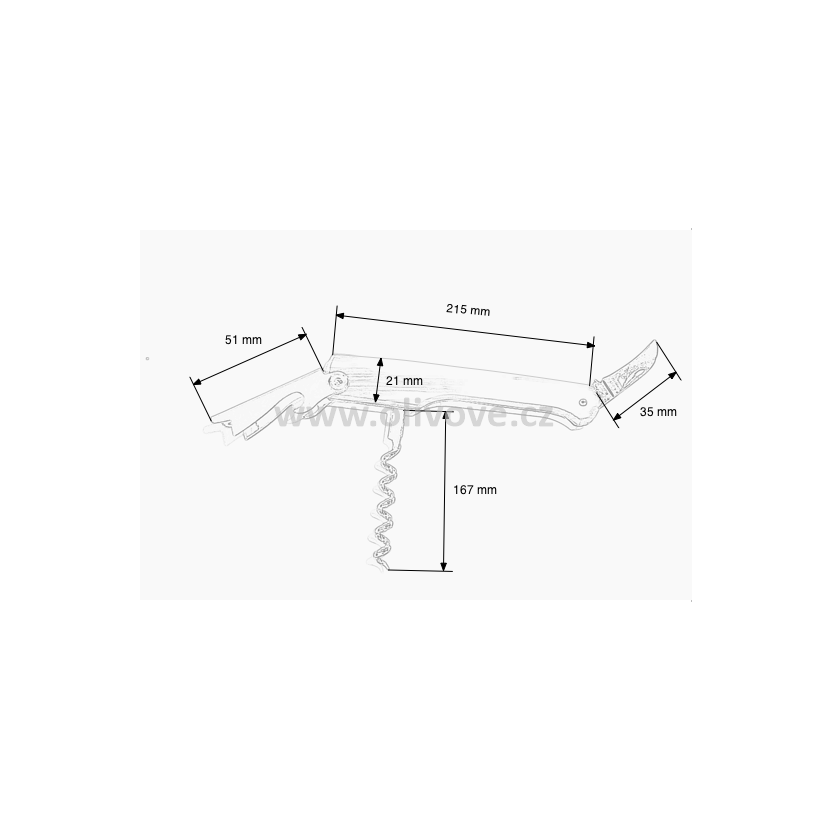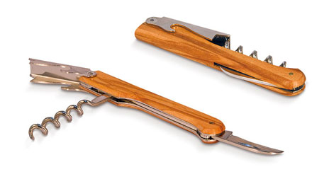 Klasický otvírák na víno tzv. číšnický otvírák s nožem. Olivové dřevo doplňuje nerezavějící ocel.